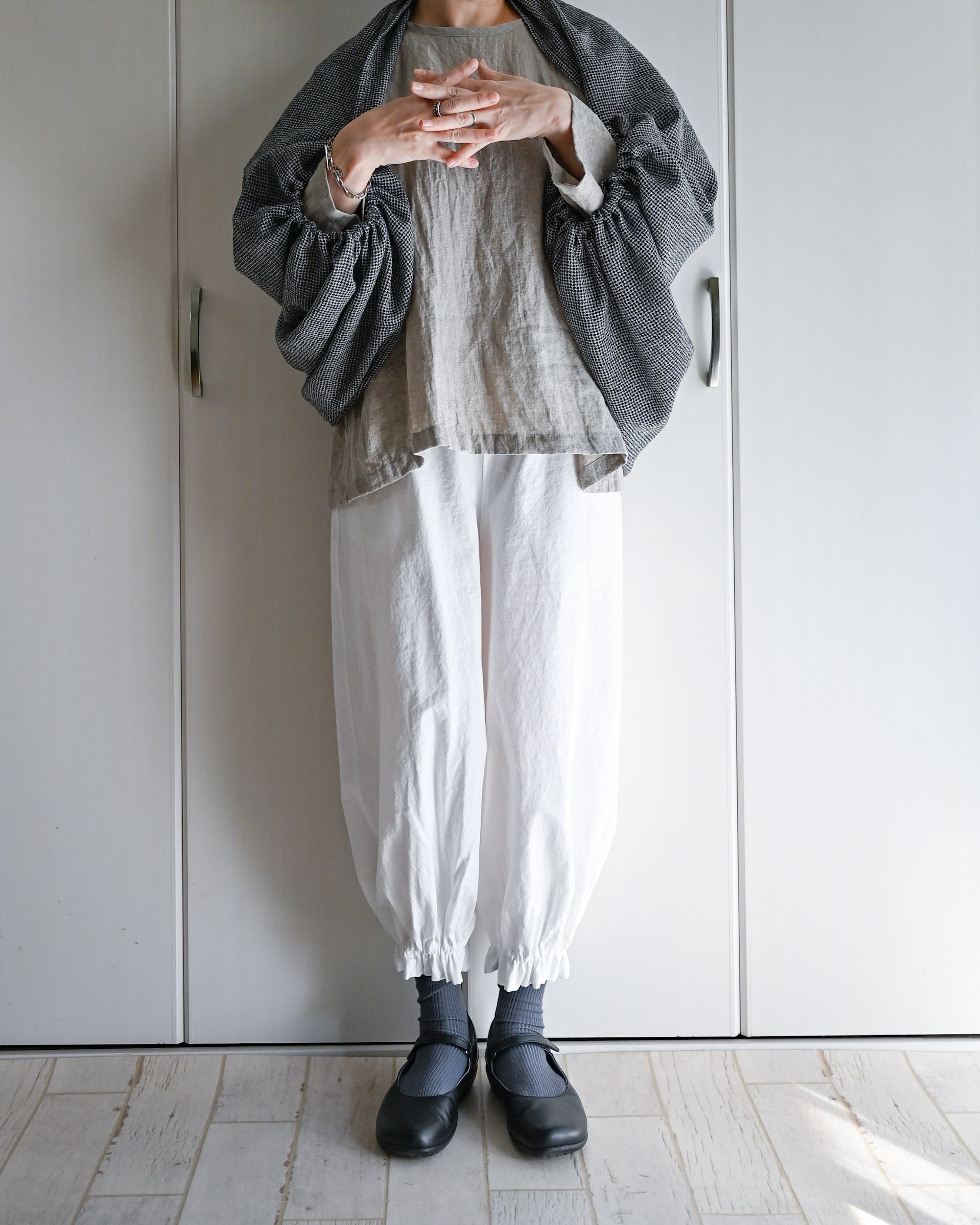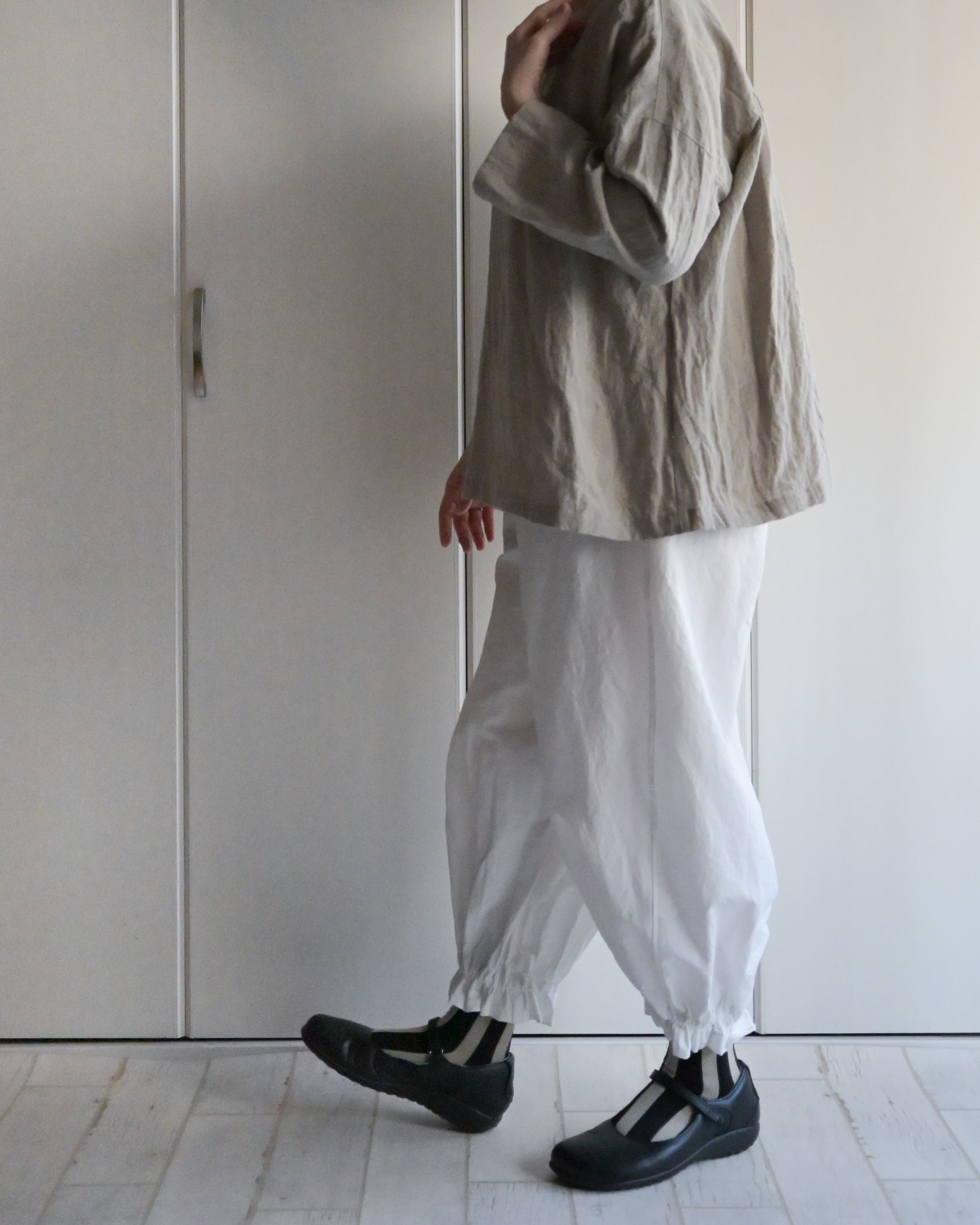 ワンピースの下にも履きやすい様、以前のものよりボリューム抑えめになっています。