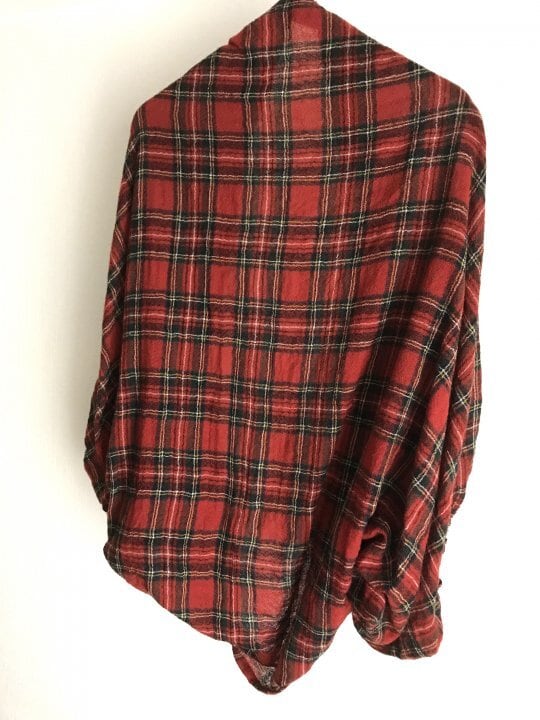 広げると筒状になっており、端っこに腕を通す作りになっています。