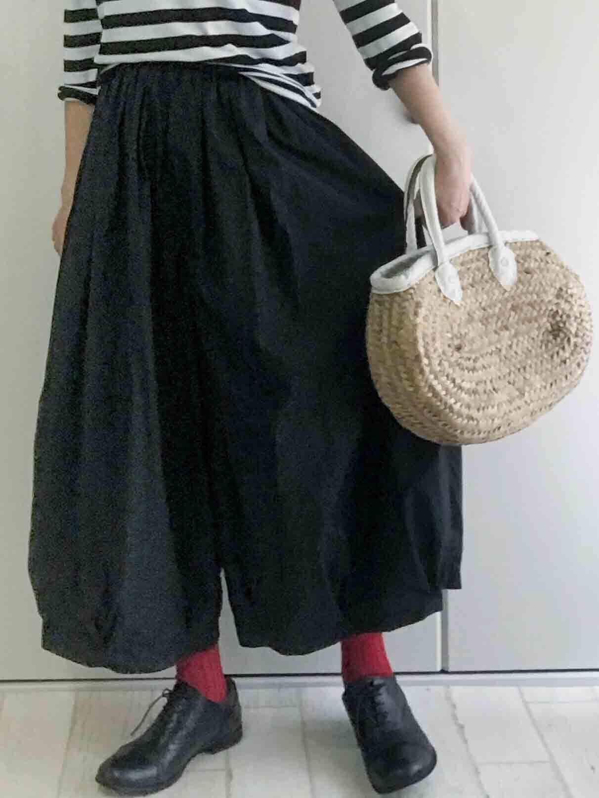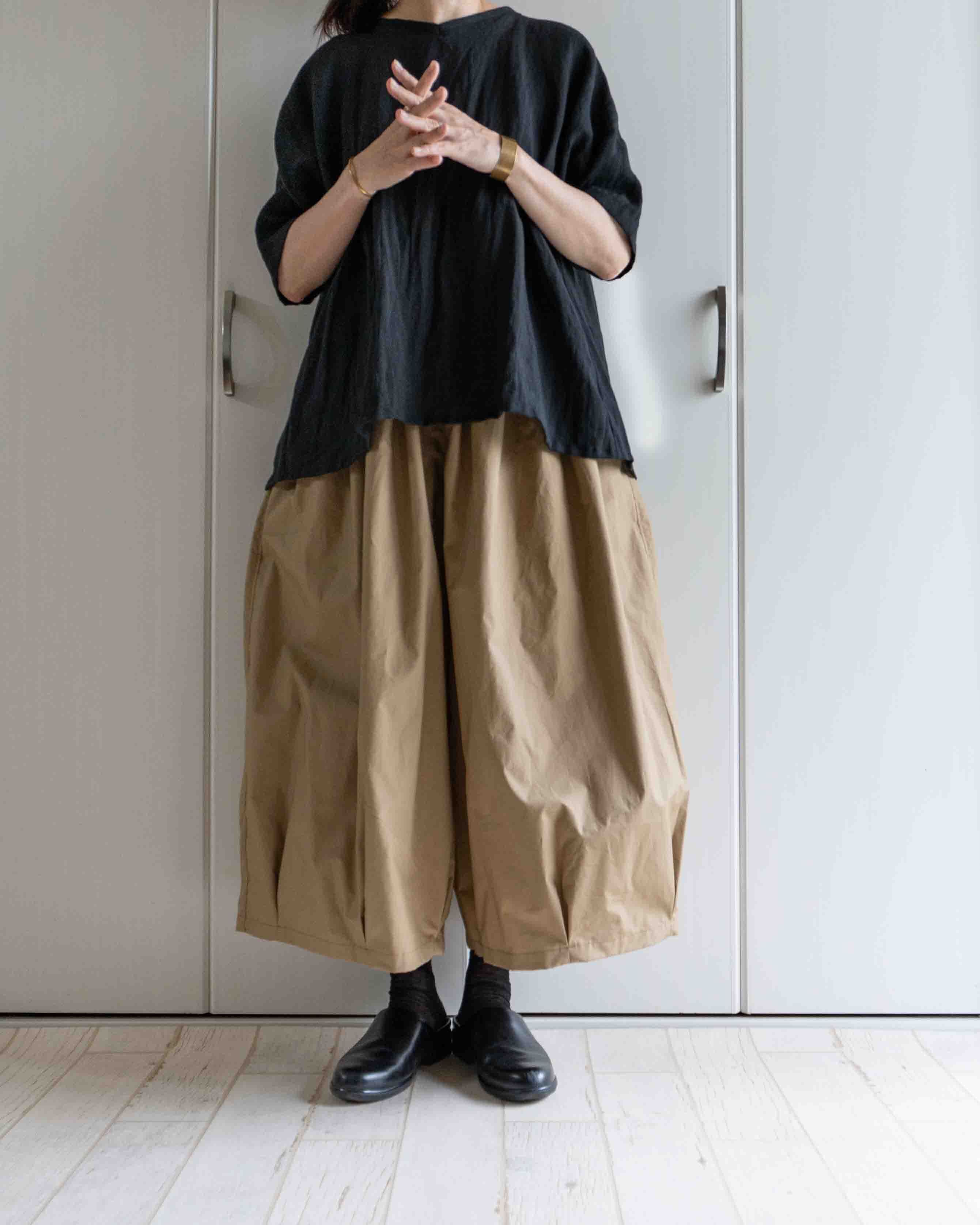 「ランタン」の名の通り、提灯をイメージしたふんわりと丸みのあるシルエットのパンツです。